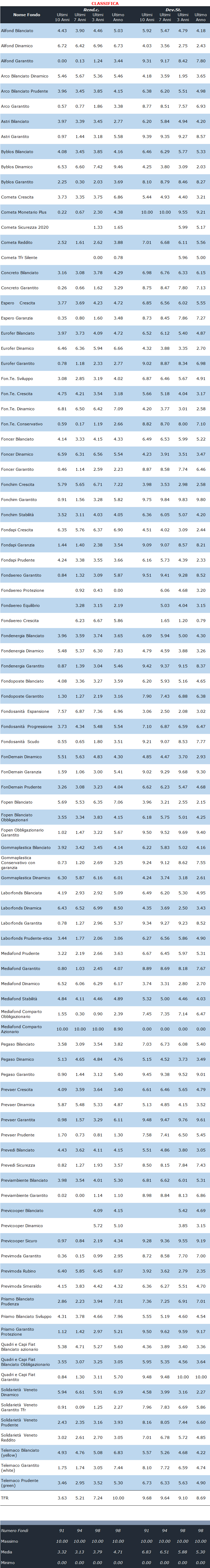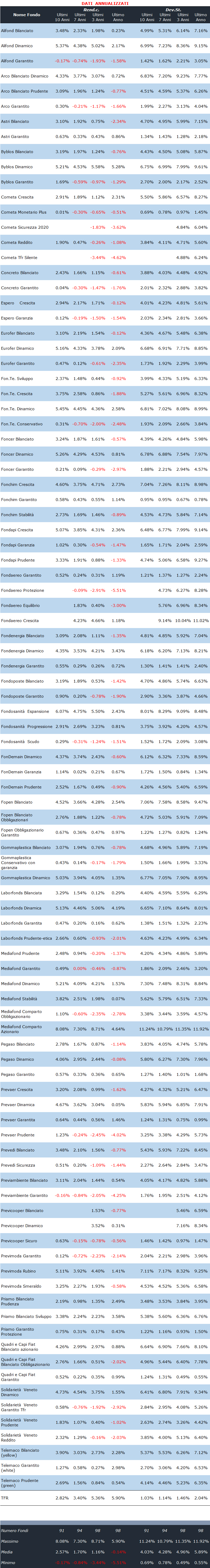 Pension Fund Performances - Italia